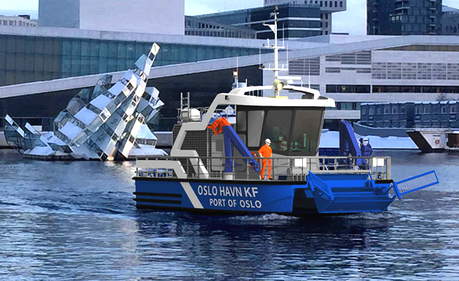 Norveç'in Oslo Limanı'nda su yüzeyindeki atıkları toplama işlemi elektrikli bot ile yapılacak.
