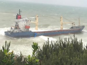 İstanbul Şile Sahilköy açıklarında şiddetli fırtına nedeniyle bir kargo gemisi karaya oturdu.