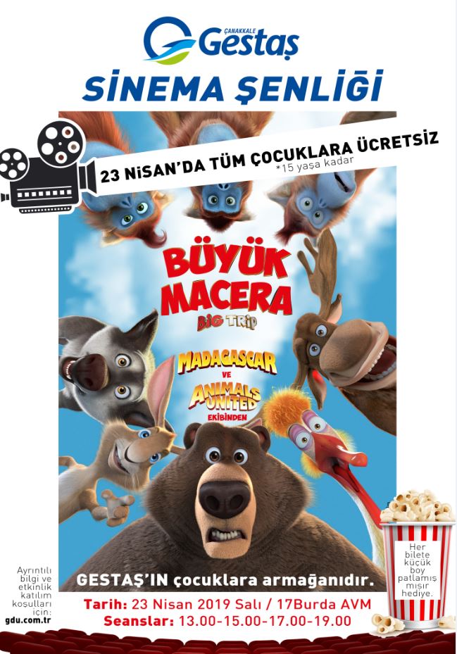 23 Nisan Ulusal Egemenlik ve Çocuk Bayramı’nda Çanakkale’deki 17 Burda Alışveriş Merkezi’ndeki sinema salonunda GESTAŞ, çocukları Büyük Macera filminde ağırlayacak.