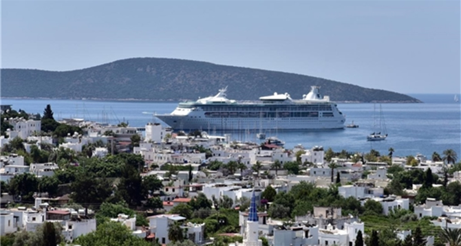 Akşam saatlerine kadar Bodrum'da kalacak kruvaziyerin daha sonra Yunanistan'ın Girit Adası'na hareket edeceği bildirildi.
