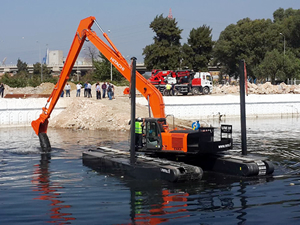 İZSU Genel Müdürlüğü İzmir ili sınırları içerisinde bulunan derelerin,bakım ve temizlik çalışmalarını gerçekleştire bilmek, deniz ve göl kıyılarında, açık kanalet içlerinde, dalyanlarda, bataklık ve sazlıklarda, kara yolu ve su yolu kullanarak, tarama faaliyeti yapmak için, YÜTEK'ten son teknoloji kara ve deniz de gidebilme özelliği olan amfibi iş makinesi aldı.