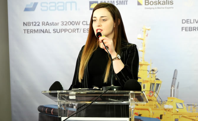 Altuğ, “Her şeyden önce emeği geçen bütün ekibe çok teşekkür ediyorum. Smit ve Boskalis ekibine de çok teşekkür ediyorum. Arkadaşlar, bu römorkör Kanada’ya gidecek. Kanada’da bizim emeğimizi temsil edecek. Bizim kim olduğumuz, kimliğimizi temsil edecek. Derya arkadaşımız, kendisi kadar güzel bir gemi yaptı. Ben kendisini de tebrik ediyorum. Aynı zamanda Uzmar’da çalışan bütün kadınlarımızı da tebrik ediyorum. Kendiniz gibi güzel bir gemi inşa ettiniz. Hepinizin emeği büyük. Biz bunu sadece Uzmar olarak değil; Türkiye’nin evlatları olarak yaptık. Hepimiz bir araya geldiğimiz zaman ne kadar güzel bir şey yapabileceğimizi burada, şurada denize koyduk. Biz aynı zamanda kılavuzluk ve römorköraj firmasıyız. Bu kadar güzel gemilerinde Türk limanlarında hizmet ve servis vermesini amaçlıyoruz Uzmar kılavuzluk ve römorköraj firması olarak” dedi.