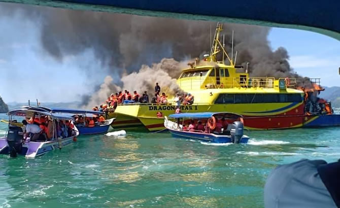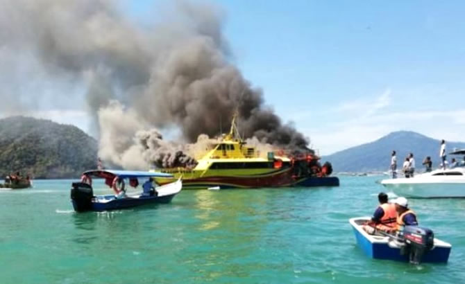 Langkawi’den yola çıkan “Dragon Star” isimli feribot, nedeni henüz belirlenemeyen bir nedenle çıkan yangında dakikalar içinde alev aldı. Yolcular yangından denize atlayarak kurtuldu.