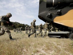 Urla ilçesi Menteş bölgesindeki askeri eğitim bölgesinden kalkan 4'ü çift motorlu 19 nakliye helikopteri, Seferihisar'daki tatbikat alanına iniş yaptı. Helikopterlerden inen askerler, senaryo gereği hızlıca mevzi aldı. Askerleri nakleden helikopterler de bölgeden ayrıldı.