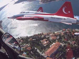 İstanbul'u kanatları altına alan Türk Hava Kuvvetlerinin Akrobasi Timi Türk Yıldızları boğaz üzerinde yaptığı uçuş ile milyonların başını gökyüzüne çevirdi. Eşsiz bir manzara eşliğinde gerçekleşen uçuş Türk Yıldızlarının kokpit kamerasından da böyle görüntülendi. Türk Yıldızları bu eşsiz uçuş deneyimlerini sosyal medya hesapları üzerinden paylaştı.