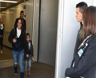 Corendon Hava Yolları ile gelen İsrail ve Filistinli 180 turiste havalimanı çıkışında lokum ikram edildi ve karanfiller verildi.