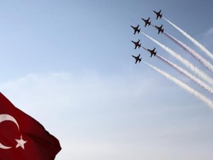 Türk Yıldızlarının gösterisi, uçakların gökyüzünde kalp çizmesiyle sona erdi.