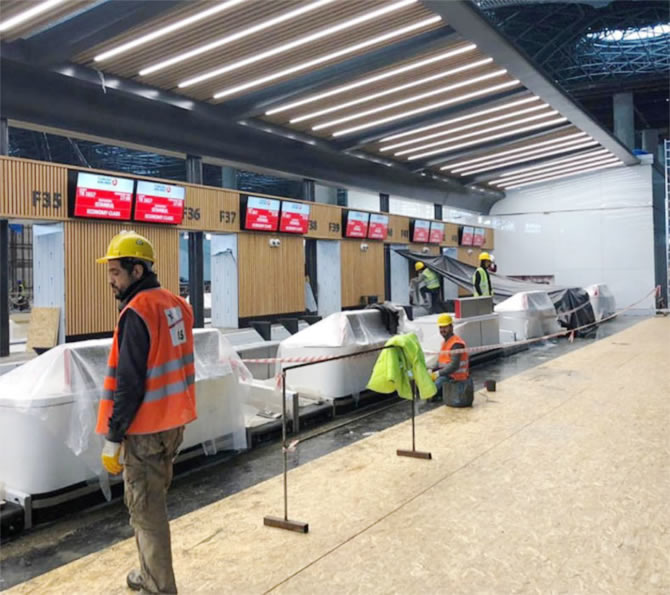 Edinilen bilgiye göre; Türk Hava Yolları'nın check-in kontuarları havalimanına getirilerek monte edilmeye başlandı.
