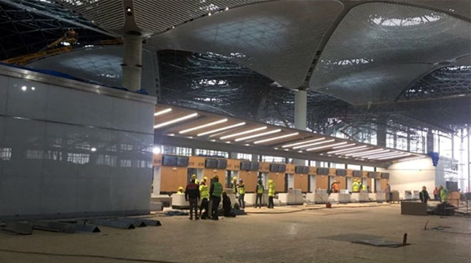 Yapımına hızla devam edilen İstanbul yeni havalimanında Türk Hava Yolları'nın check-in bankoları oluşturulmaya başlandı.