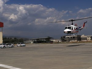 "Drone" adı verilen cihazlardan da yararlanan trafik timlerine, Aydın Jandarma Filo Komutanlığına ait bir helikopter havadan destek verdi.