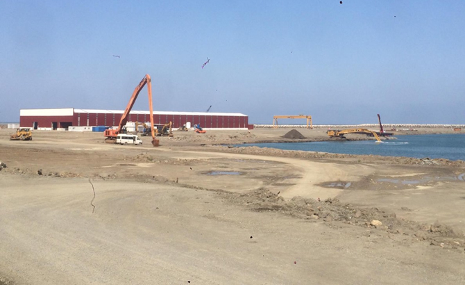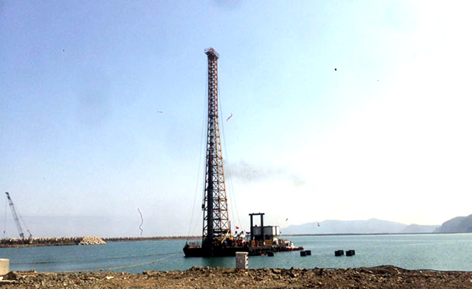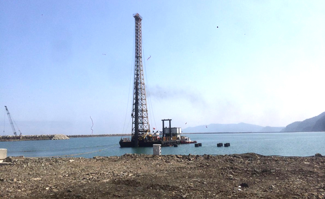 2020 yılında bitirilmesi beklenen liman inşaatında alanda kurulan fabrikada üretilen rıhtım kazıkları çakılmaya başlandı.