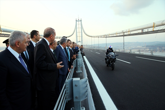 Türkiye'nin 2023 hedefleri kapsamında hayata geçirdiği "dev projelerden" Osmangazi Köprüsü hizmete açıldı. Cumhurbaşkanı Erdoğan, köprünün bayram sonuna kadar ücretsiz olacağını söyledi.